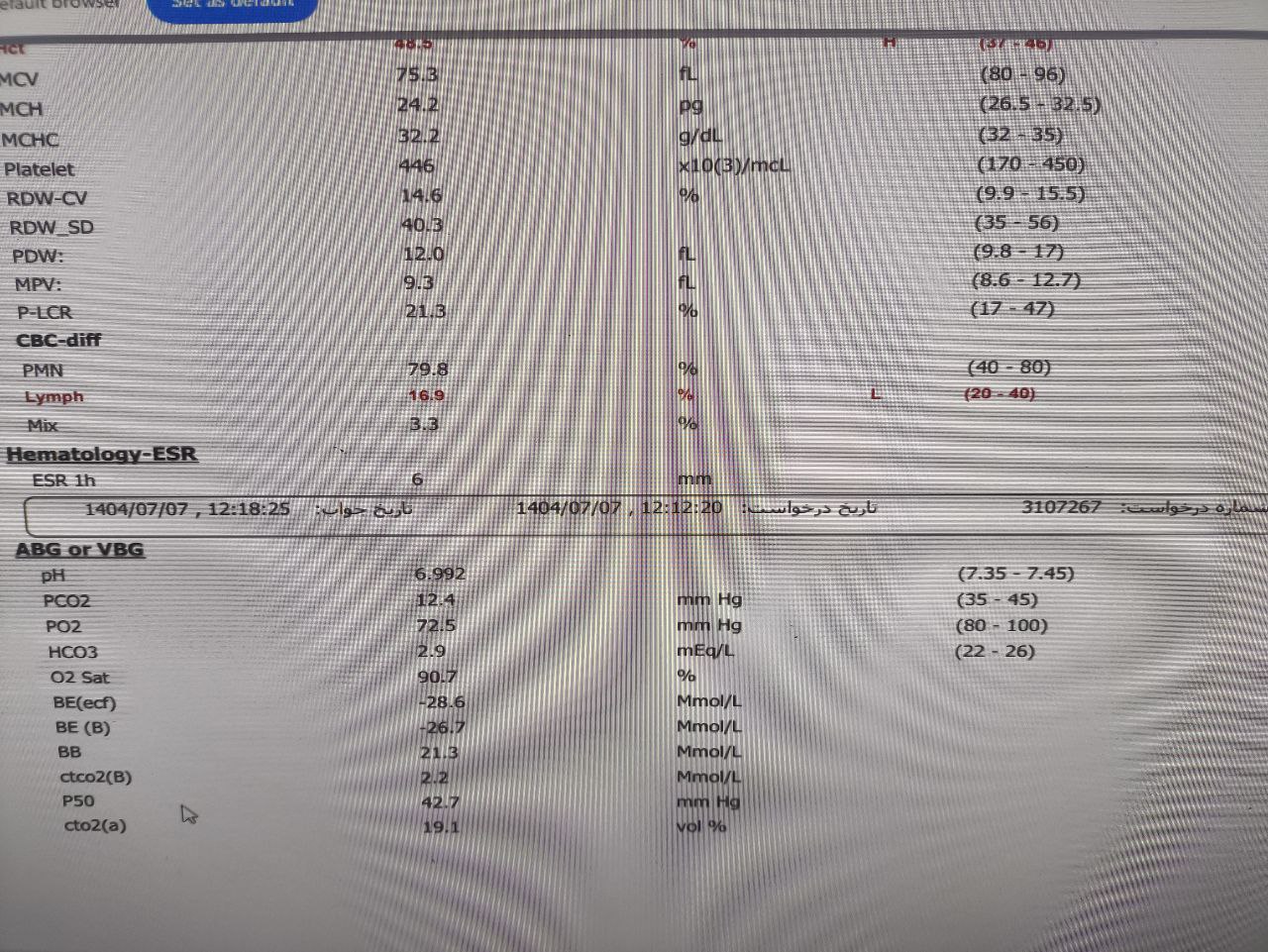 بیمار سابقه کاهش فشار خون نداشته اما در بدو پذیرش فشار قابل اندازهگیری نبوده است.