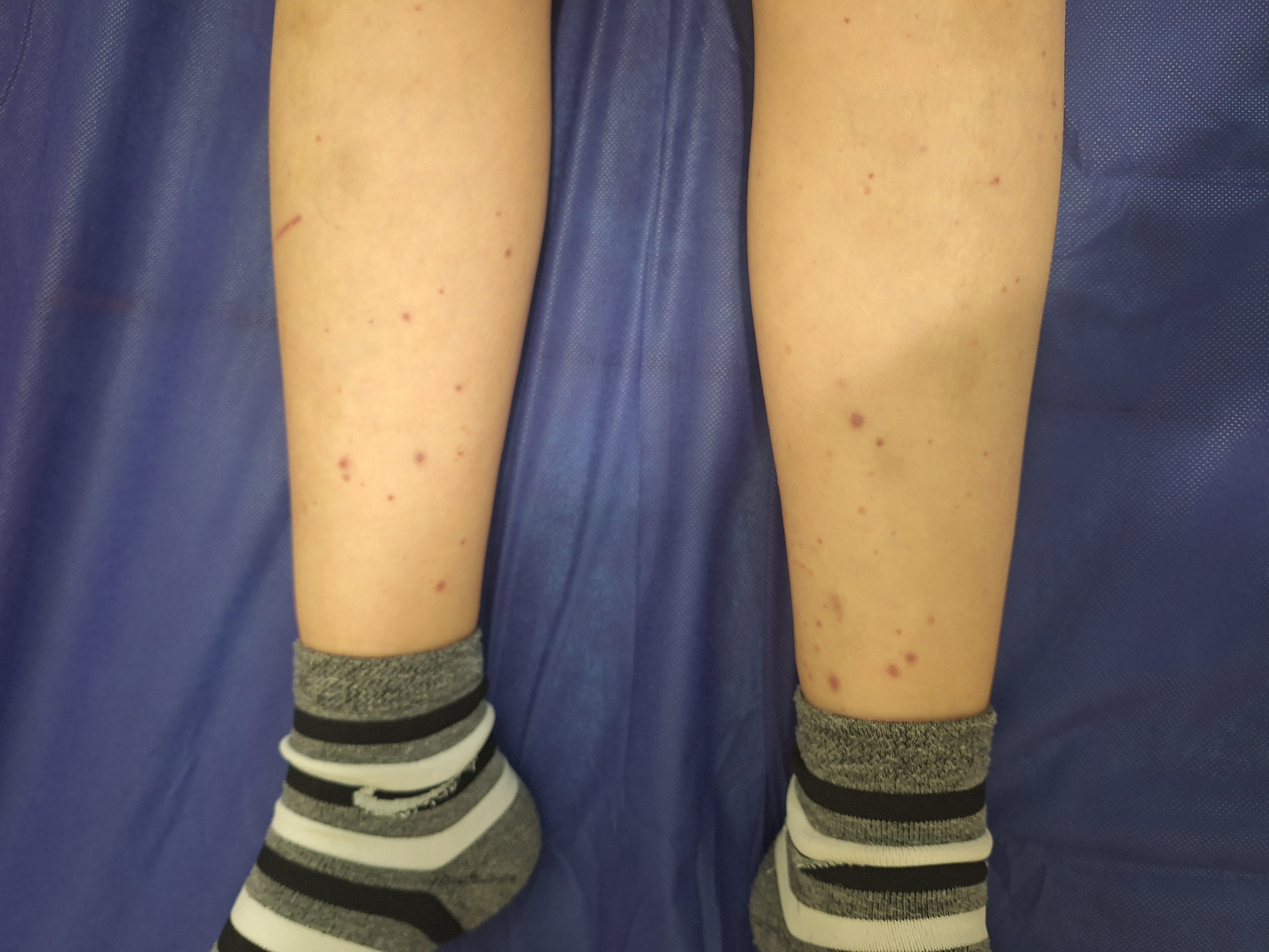 بیمار پسر 9 ساله بدون PMH خاصی با ضایعات به شکل پورپورا در اندان تحتانی با شروع از دیستال به همراه دو مرتبه آرترالژی در مفاصل زانو و مچ پا از 7 روز پیش