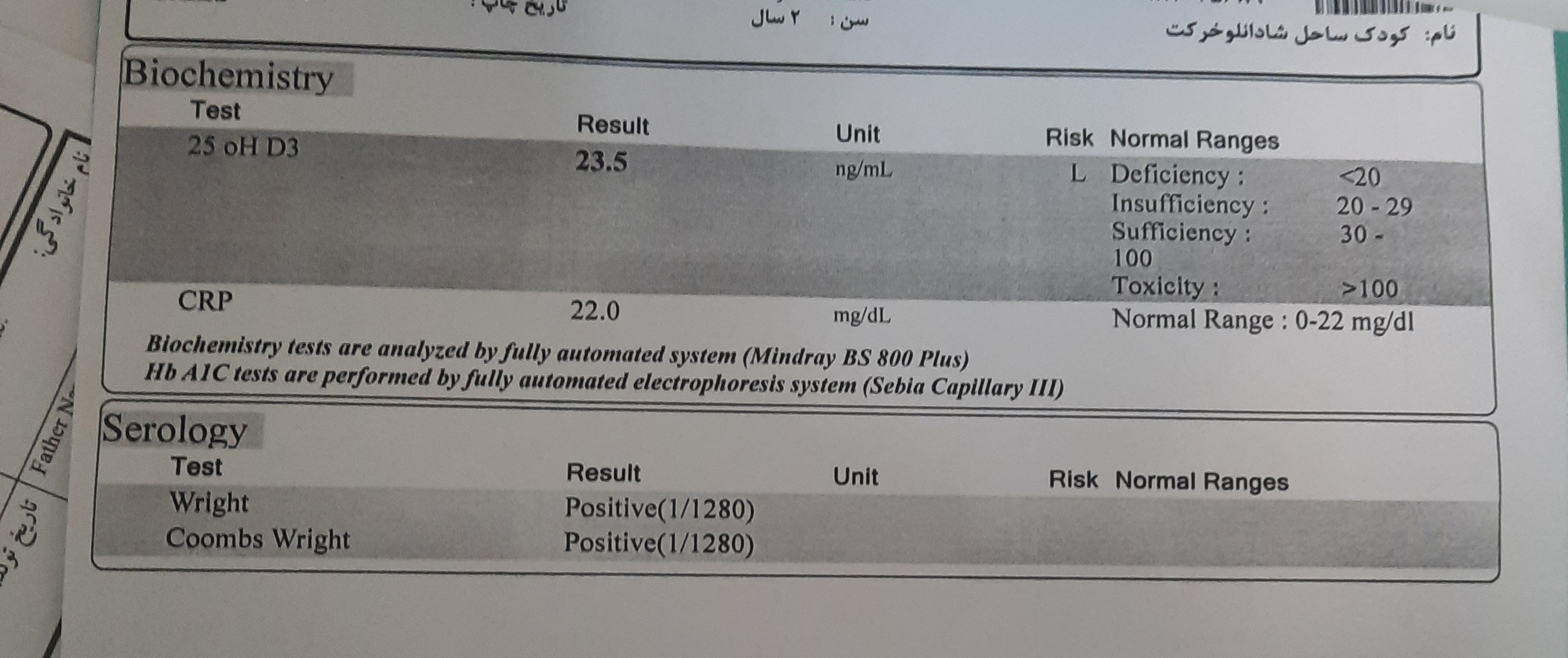 بیمار دختر ۲ ساله است که با شکایت تب شدید از ۵ روز قبل مراجعه کرده است. تب در ابتدا به شیاف و شربت استامینوفن پاسخ نسبی میداده، اما بهتدریج پاسخ به درمان کاهش یافته و تب بهصورت پایدار ادامهدار شده است.