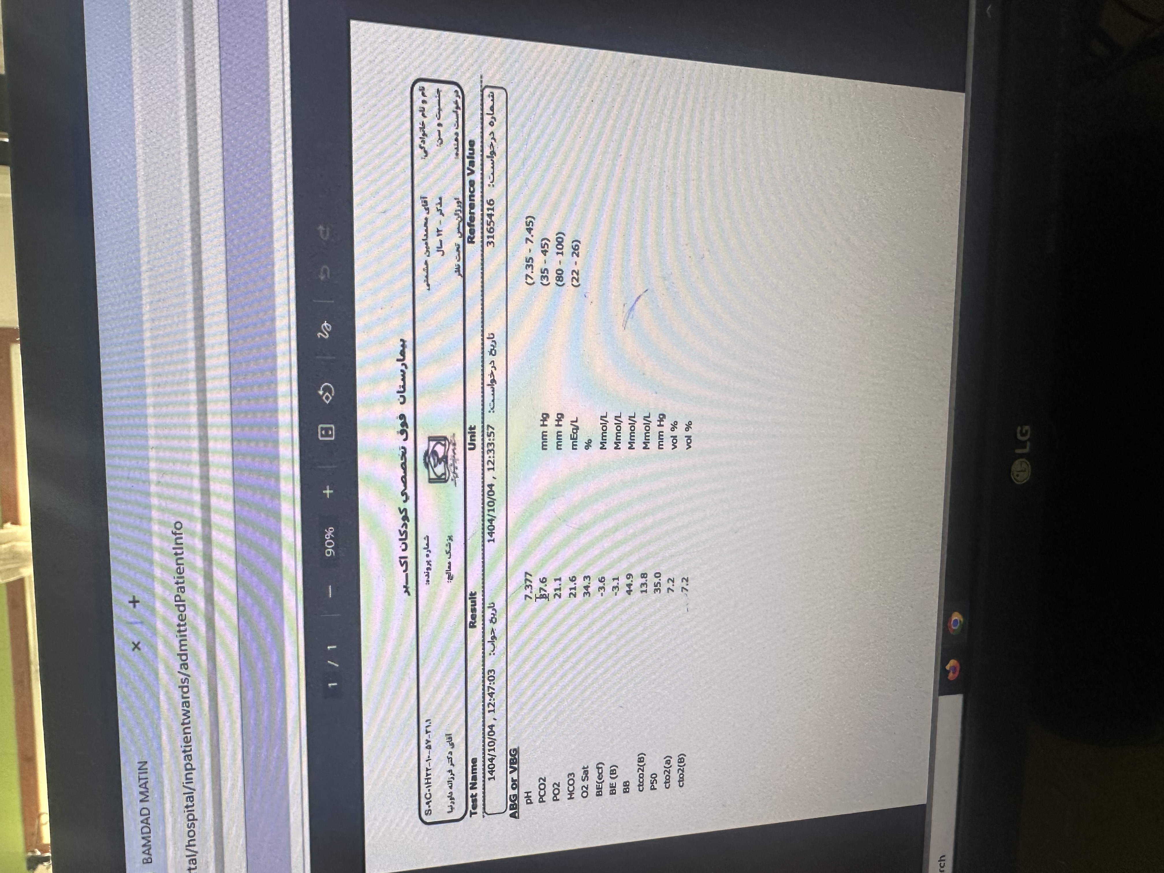 بیمار پسر ۱۲ساله که حدود یک ماه قبل دچار علائم flu like (تب،سرفه،رینوره،dp)شده که باتوجه به دیسترس تنفسی برای بیمار امپول دگزامتازون تجویز و که تنگی نفس بهبود و سرفه های non productive ادامه داشته و ویز هم ادامه داشته است که بیمار مصرف سالبوتامول برایش داشته است.و همچنین بینار ذکر میکنه چند بار (بیشتر از ۱۰بار)در خواب به علت تنگی نفس بیدار شده است.از شب گذشته دچار dp,N/v, productive cough شده که به مطب مراجعه با تشخیص تب و تنگی نفس و با نامه به این مرکز مراجعه کرده است .همچین بیمار تنفس دهانی و شکمی دارد و تحملpoندارد.