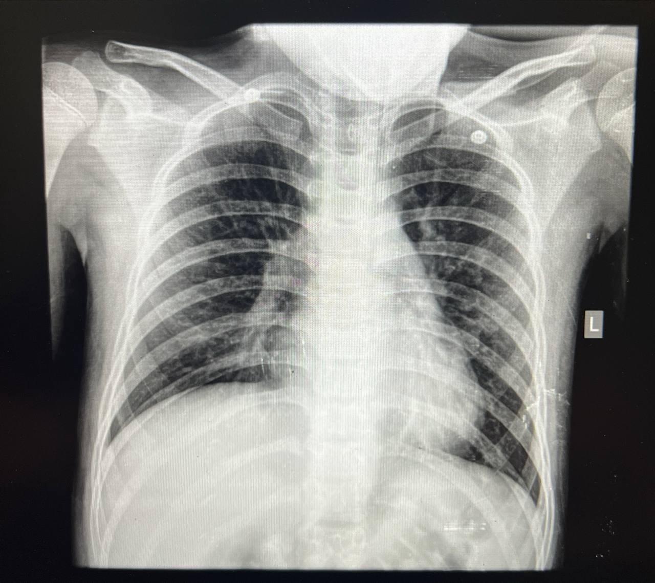 شکم نرم و بدون تندرنس و گاردینگ و ارگانومگالیپنونمونی اتیپیک با توجه cxr